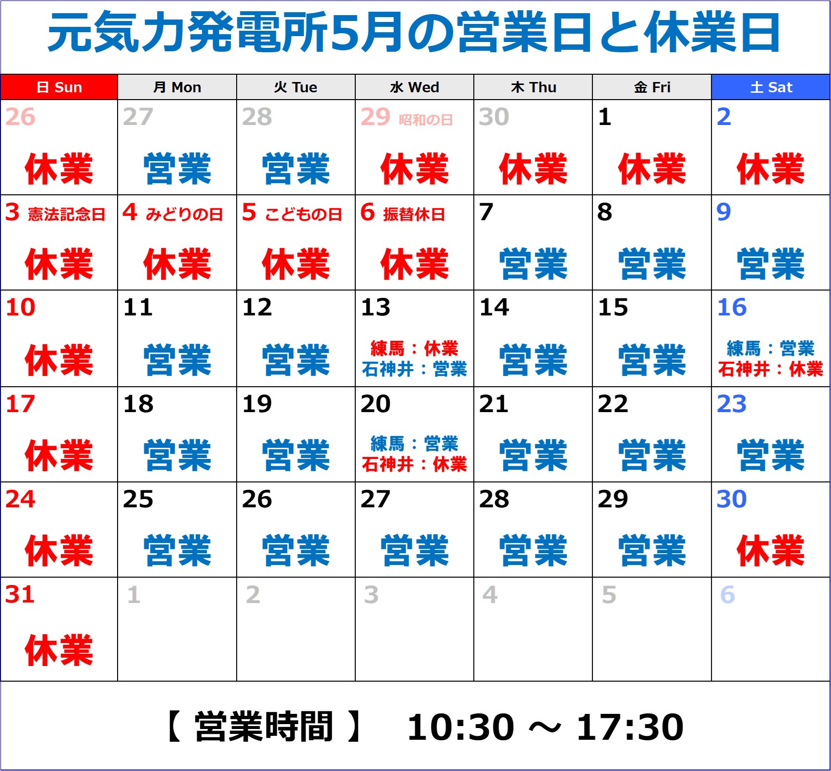 ◇4月の営業日・休業日カレンダー 営業時間10:30~17:30