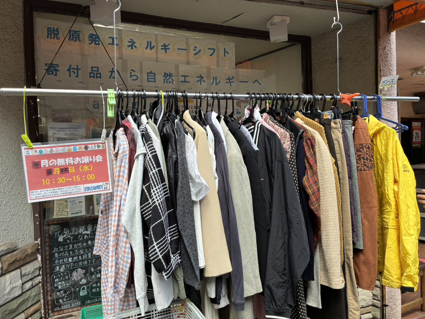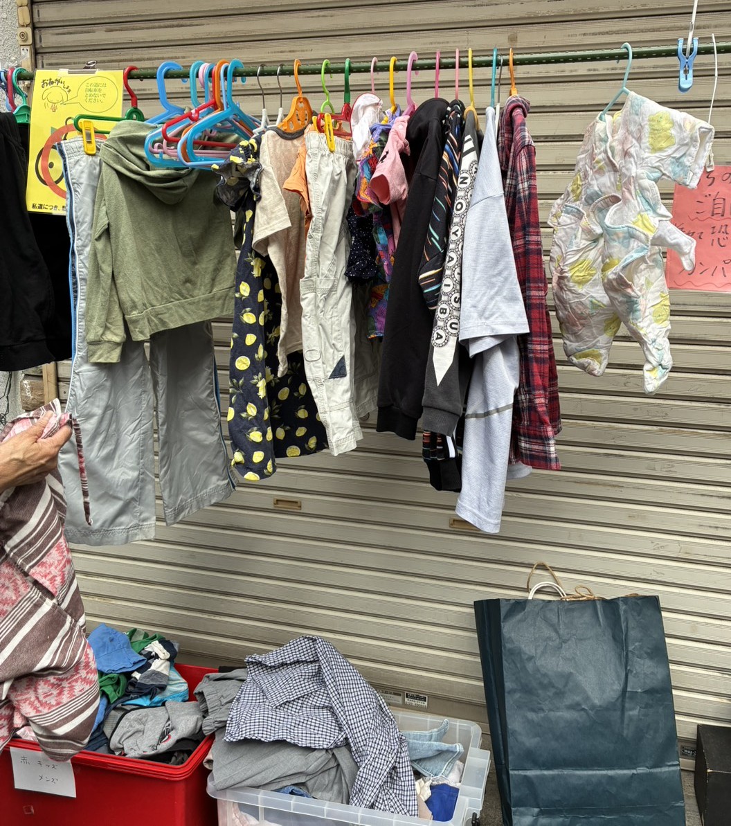 4月22日(水)、今年度最初の無料お譲り会を行いました。 黄砂まじりの風が強く吹く中、開始の10時30分には6名の方がお立ち寄りくださいました。 インスタを見てこられた方や、通りかかって初めてお譲り会に参加された方などで、とても賑わいました。 今日は、特に子ども服が大人気でした。出した点数の2/3が選ばれていました・ ![]() 持ち帰り用に用意した紙袋もすぐになくなるほどでした。 遠方からいらした方から、「久々にやっと来れたわ。たくさん選べて嬉しい。関係している団体で使わせていただきますね。」とのお声をいただきました。 259点出して142点をお譲りし、お気持ちカンパは2,763円でした。 ご参加いただいた皆さま、ありがとうございました。(D&N&M&Y)